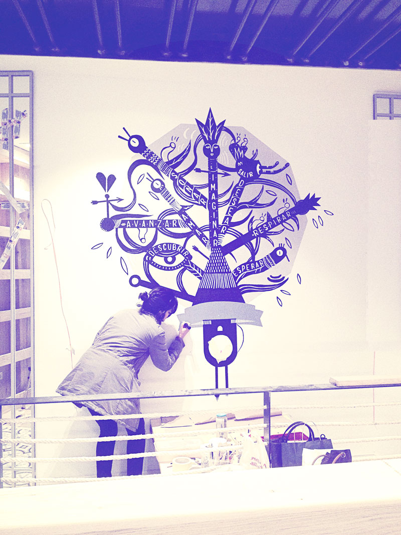 Cuckoo Clock with self-help(less) tips. Live today as to not miss yourself tomorrow. Mural for Piscolabis a restaurant from Madrid.